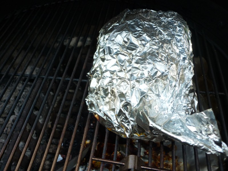 Die Aluminiumfolie soll lediglich verhindern, dass Fett und Fleischsaft in den Grill tropft.