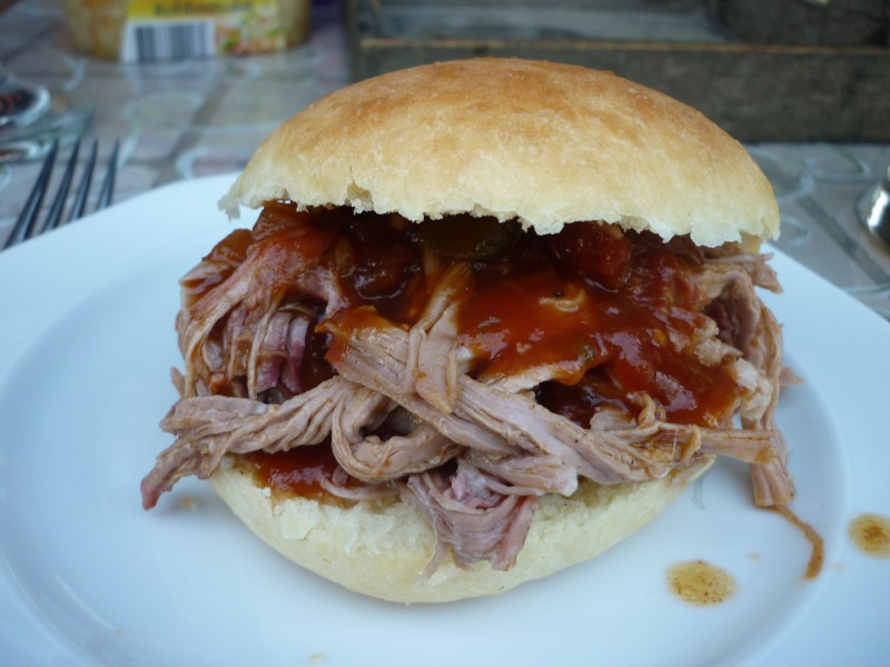 Zusammen mit einer guten BBQ-Soße auf die frisch gebackenen Buns, mehr braucht es nicht