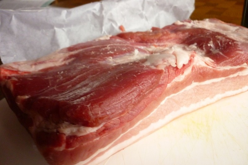sowie ein schönes Stück (1kg) Schweinebauch mit Schwarte