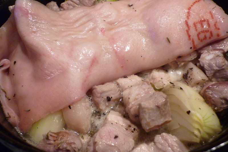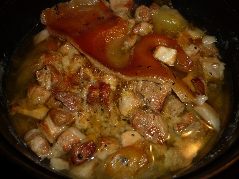 die Schwarte kommt auch dazu und es wird mit etwa 1/4 Liter Cidre abgelöscht